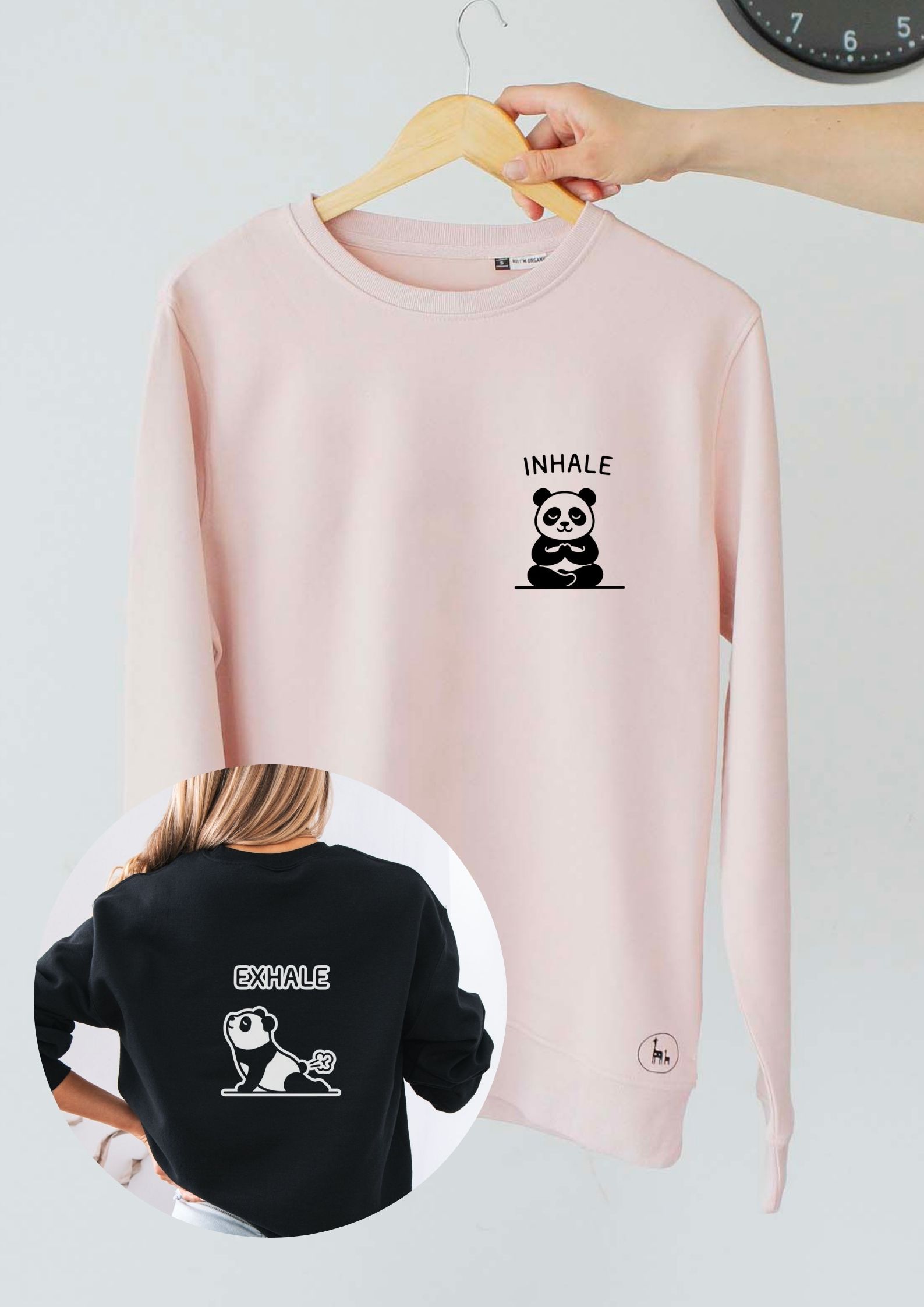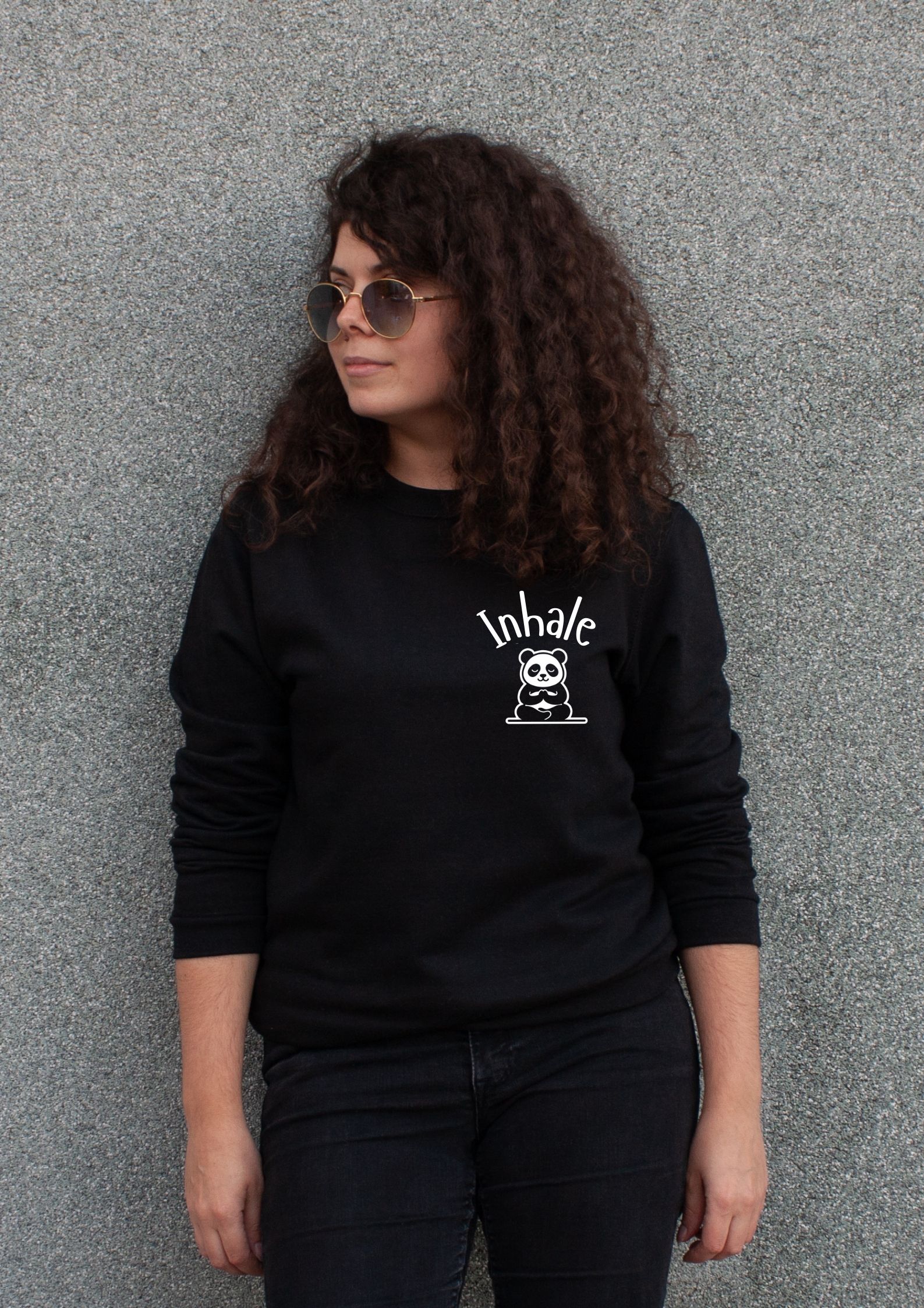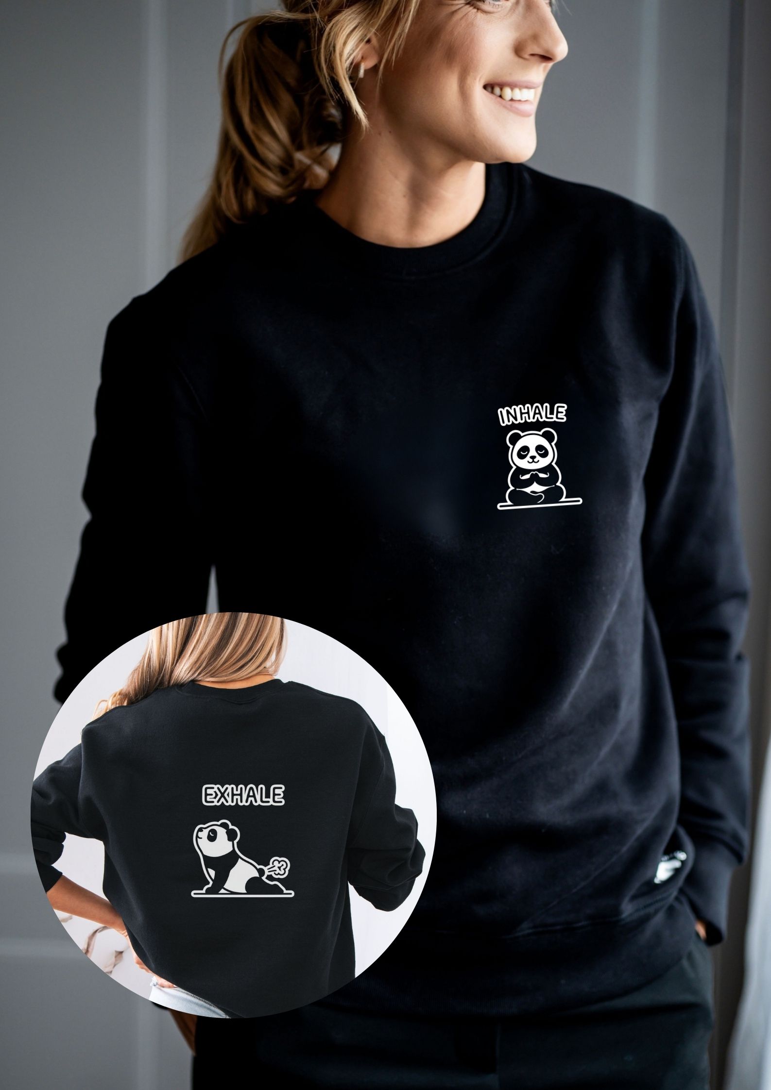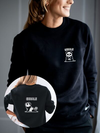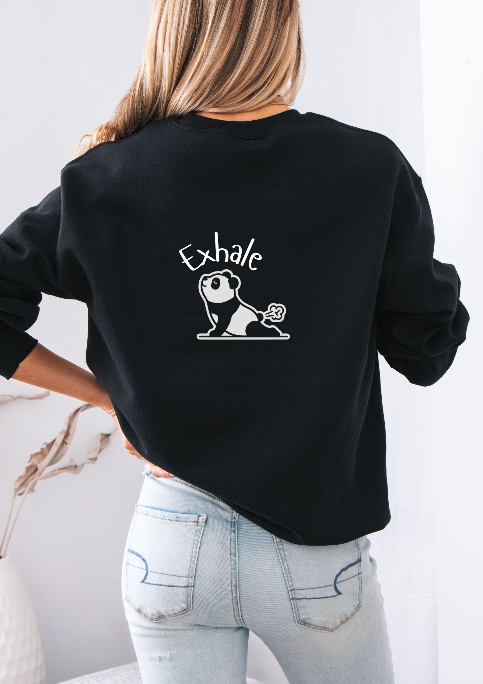 Exhale Panda is where self-irony meets conscious comfort. The design on the back features a farting panda and the minimalist message exhale.