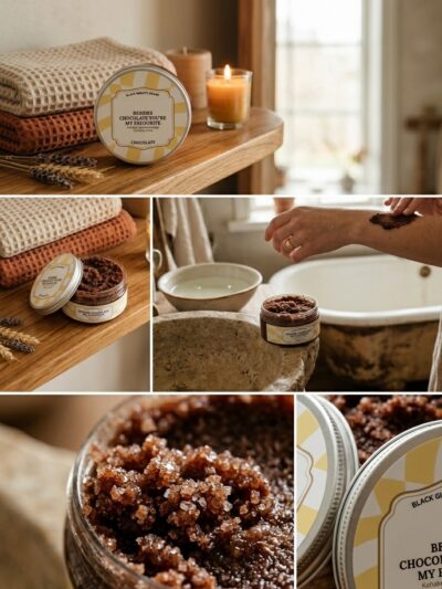 – chocolate body scrub (salt scrub), with a warm and comforting scent that helps you relax and supports a sense of well-being