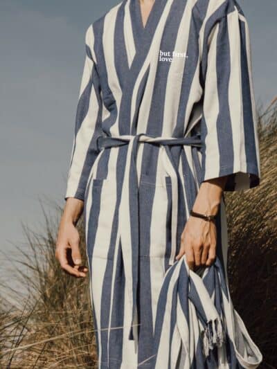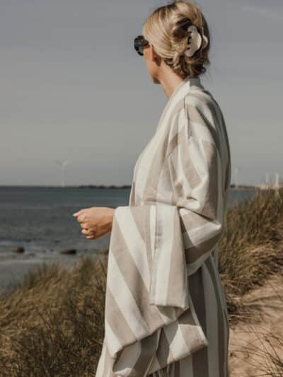 Valmistatud taaskasutatud puuvillast – pehme, õhuline ja lihtne valik rahulikeks hommikuteks, kodus olemiseks või kasvõi kaasa võtmiseks spaasse. Tuletab meelde, et vahel on kõige olulisem hoopis üks rahulik hetk. Kohvitass käes, hommikumantel seljas, ja korraks mitte midagi muud.